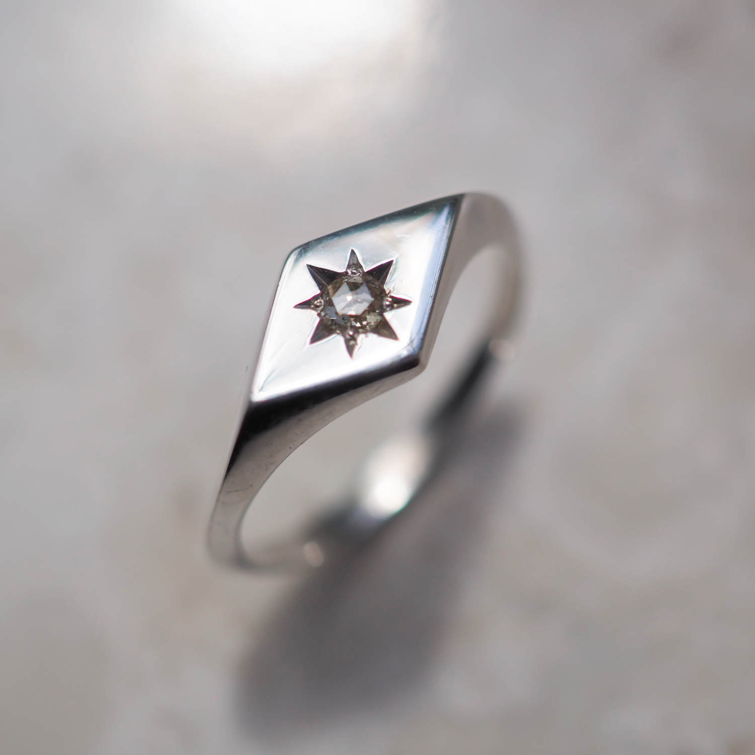 Emerald Kite Signet White Gold Ring - End of Line