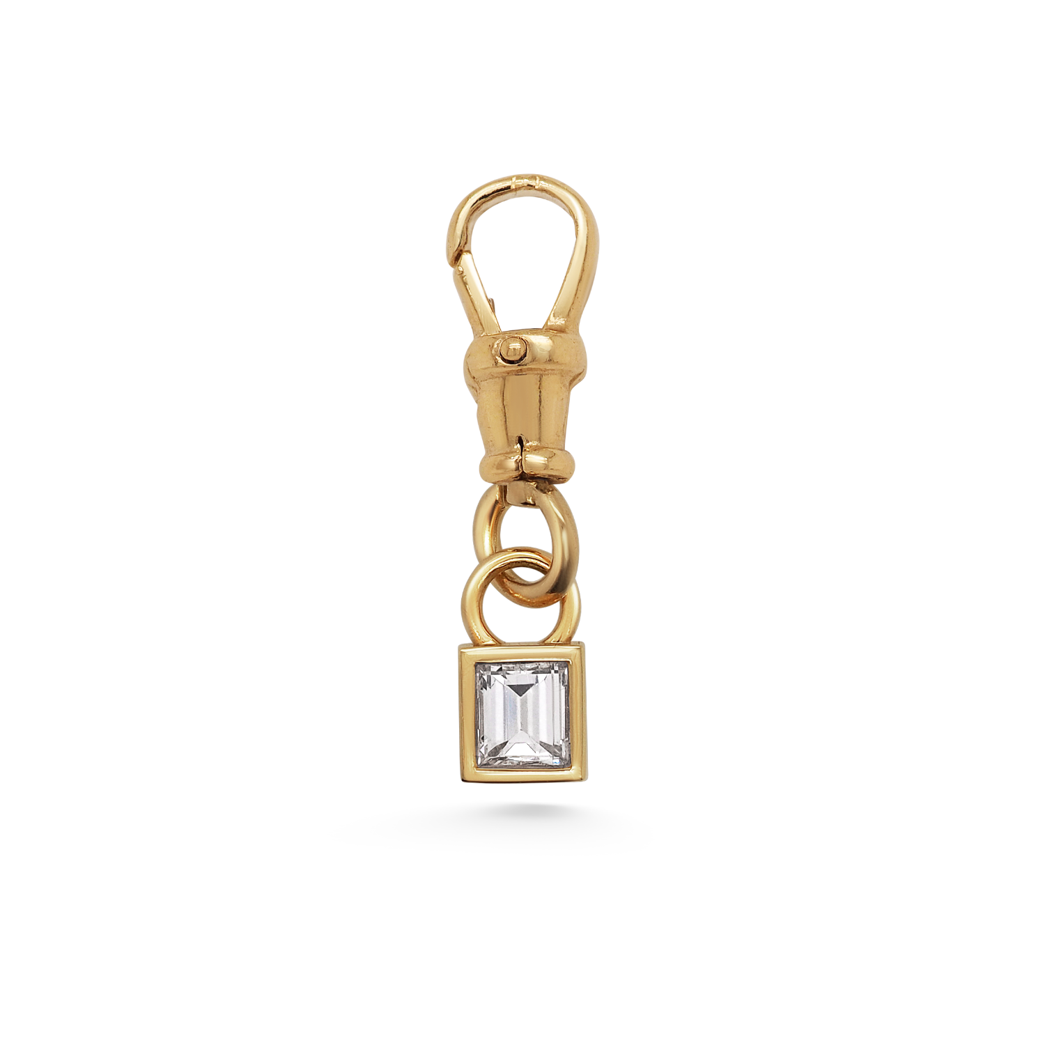 A kite cut 0.74ct parti-sapphire pendant set in 9ct recycled yellow gold, attached to an Albert swivel clasp, making it attachable to any chain.